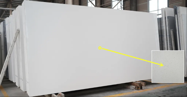 Quartz jade use special kind of quartz sand as raw material, this kind of quartz sand has different unique colors and looks like jade, Therefore, when use them to make big slab, it’s very beautiful
